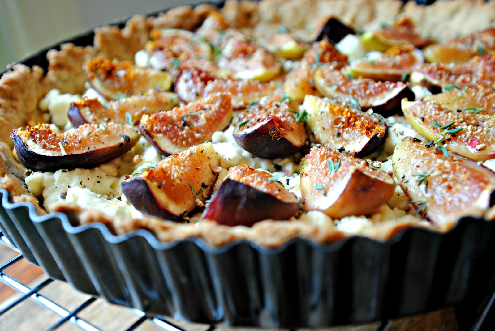 Preheat the oven to 400 F and grease an 8" tart pan with a removable bottom. Wash, stem, and quarter the figs.