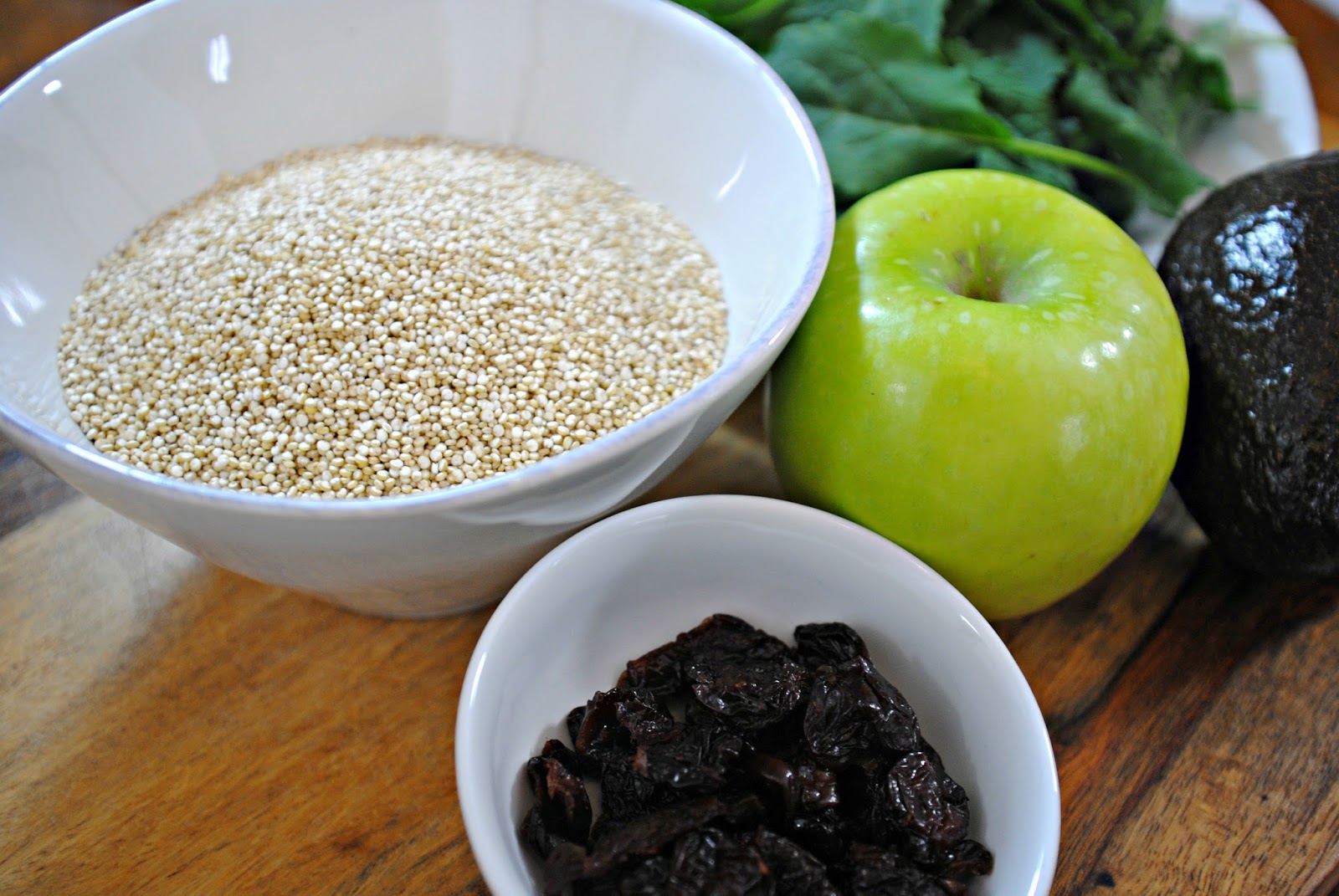 I've been trying to be a little more health conscious, lately. As Chris Pratt put it upon being cast in Guardians of the Galaxy: "honey, stop baking, I have to lose 75 pounds!" I'm not quite so far gone yet, but I think it's a truth universally known that most Americans (or residents of developed nations, in general) could stand to be a little more mindful of what ends up on their plate. Of course, growing up with a food pyramid that's heavily influenced by lobbying from America's agribusiness conglomerates, it can sometimes be hard to divorce oneself from a craving for 11 servings of grains a day. Through use of other full-flavored ingredients and the selection of lesser evils, however, delicious, healthy, and satisfying meals are still an achievable goal. This month, I offer a chicken, kale, and quinoa salad, punched up with apples, bacon, and avocado.